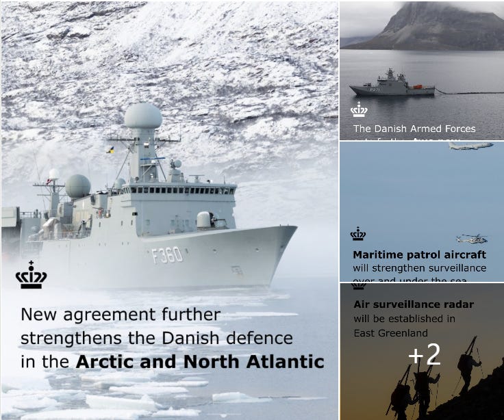 Denmark souped up its arctic capability, committing to additional arctic capable ships, F35s, radar and maritime patrol aircraft. The Danish Embassy in Canada released this handy infographic: